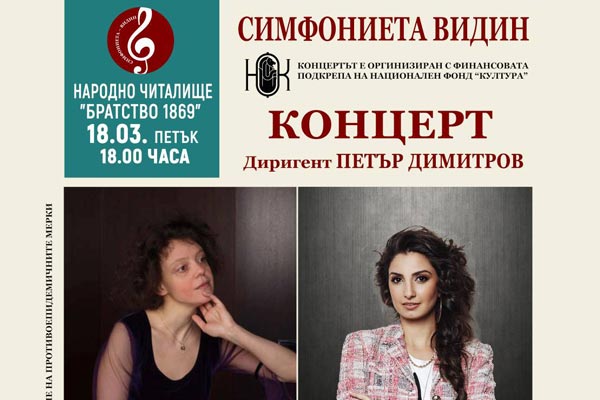 На 18.03.2022 г. от 18:00 ч. в читалище „Братство 1869“ гр. Кюстендил ще се проведе Класически концерт на Симфониета Видин с диригент Петър Димитров. Солисти: Марина Савова – пиано и Християна Лоизу – сопран.
