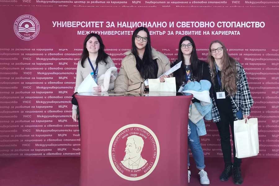 Отбор ученици от 11 и 12 клас на Езикова гимназия "Д-р Петър Берон", гр. Кюстендил, взе участие в първото състезание за възпитаници на училищата членове на Асоциацията на езиковите училища в България (АЕУБ) към УНСС, което е интердисциплинарно.