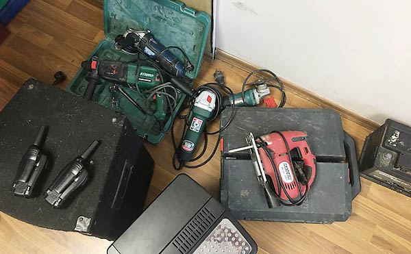 При проведена специализирана операция за противодействие на битовата престъпност полицаите са открили флексове, ударни бормашини, гедория, навигация, радиостанции, кафе-машина, акумулатор, резачка, водоструйка и тонколони. Вещите са откраднати от гаражи и имоти, които се обитават периодично.