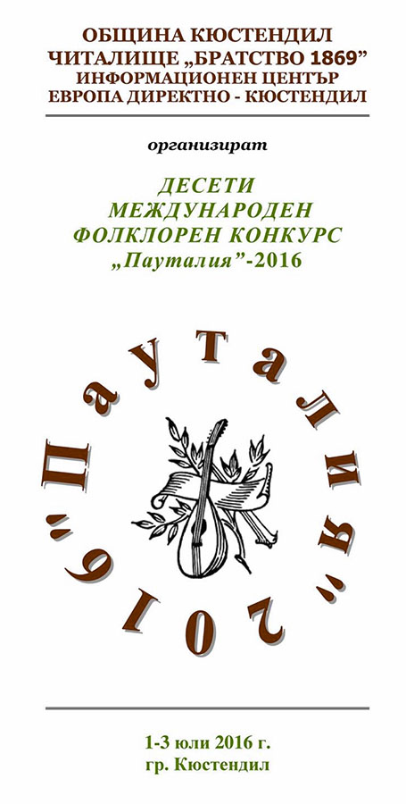 Десетият международен фолклорен конкурс “Пауталия”-2016, който ще се проведе от 1 до 3 юли 2016 г., се организира под пaтронажа на кмета на Община Кюстендил – г-н Петър Паунов.