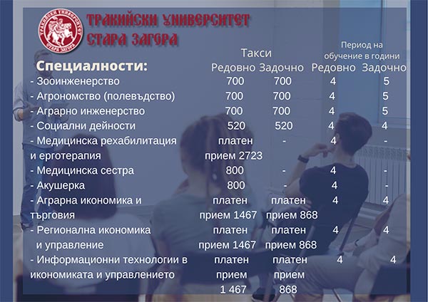 Срокът за подаване на документите към Тракийския университет изтича утре - 7 юли до 13:00 часа.