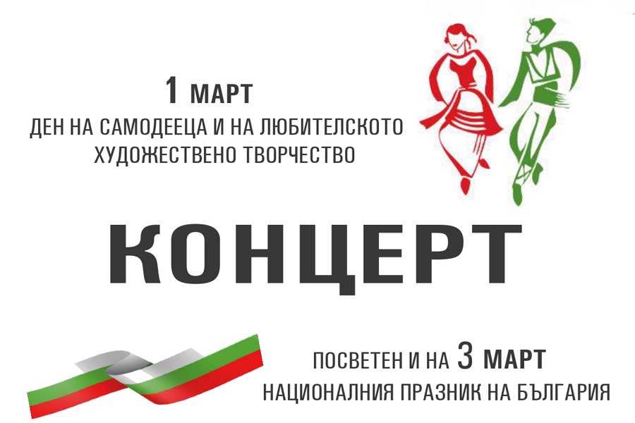 От 18:00 ч. ще стартира Празничен концерт, в който участие ще вземат Фолк-Арт Формация, Танцова формация „Нова Генерация“, Вокално-инструментална група „Елеганс“, Музикална компания „Пей сърце“, възпитаници на класовете по пиано и акордеон и др.